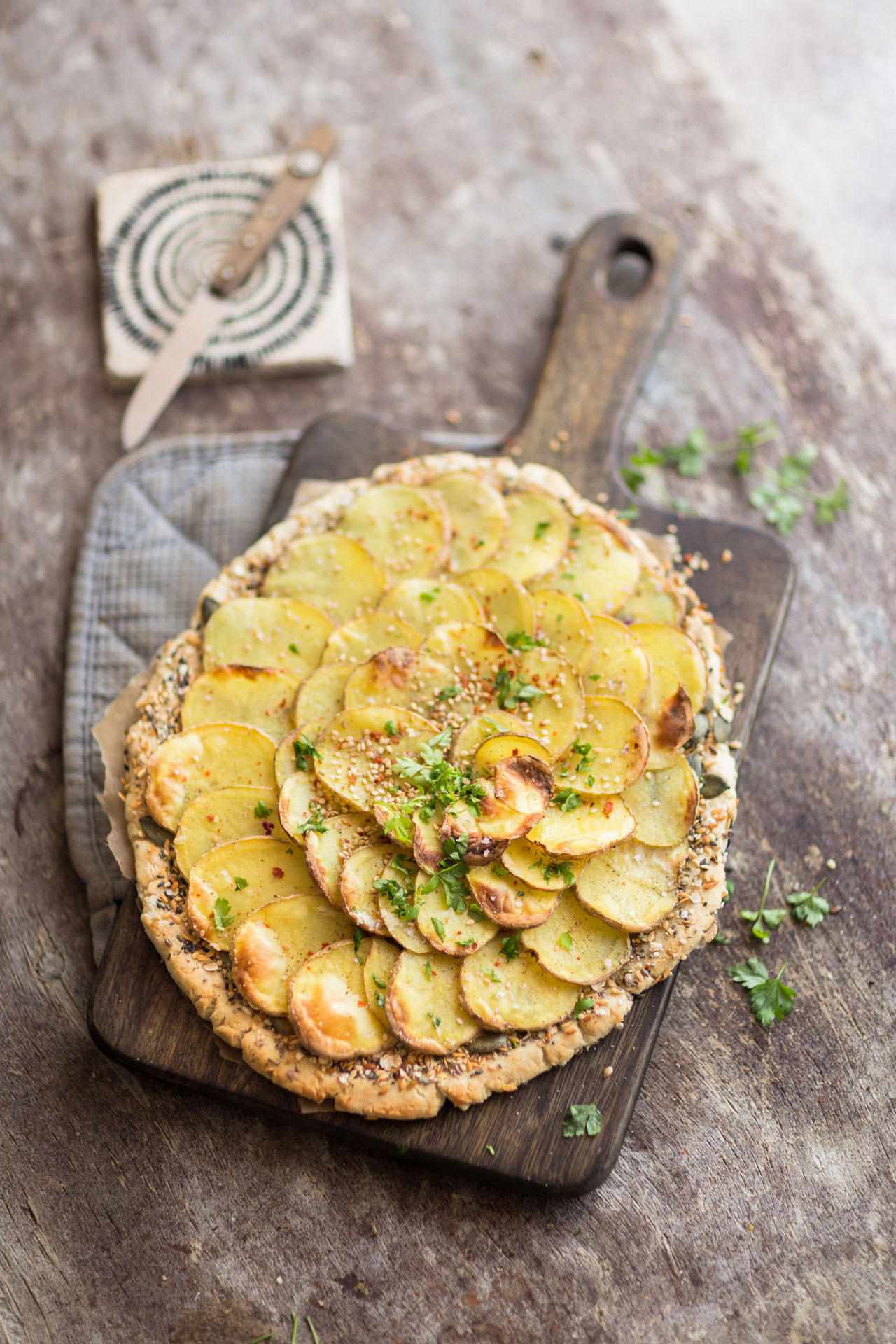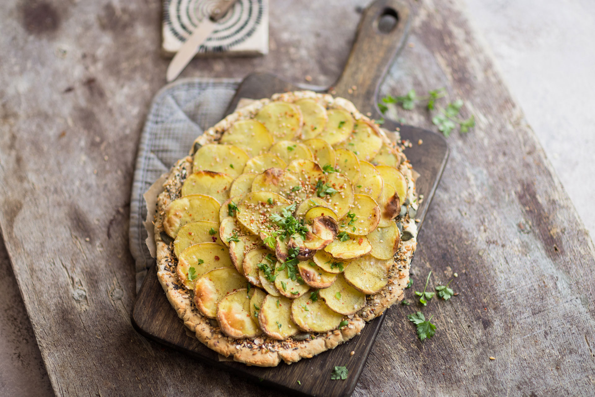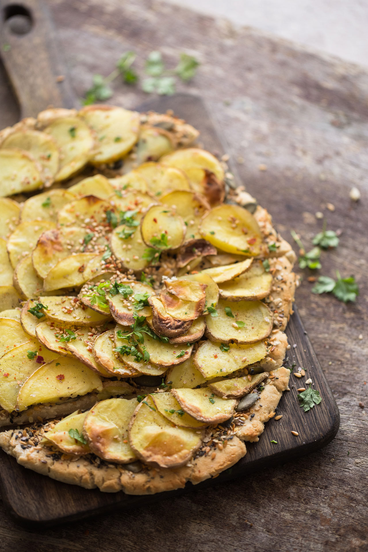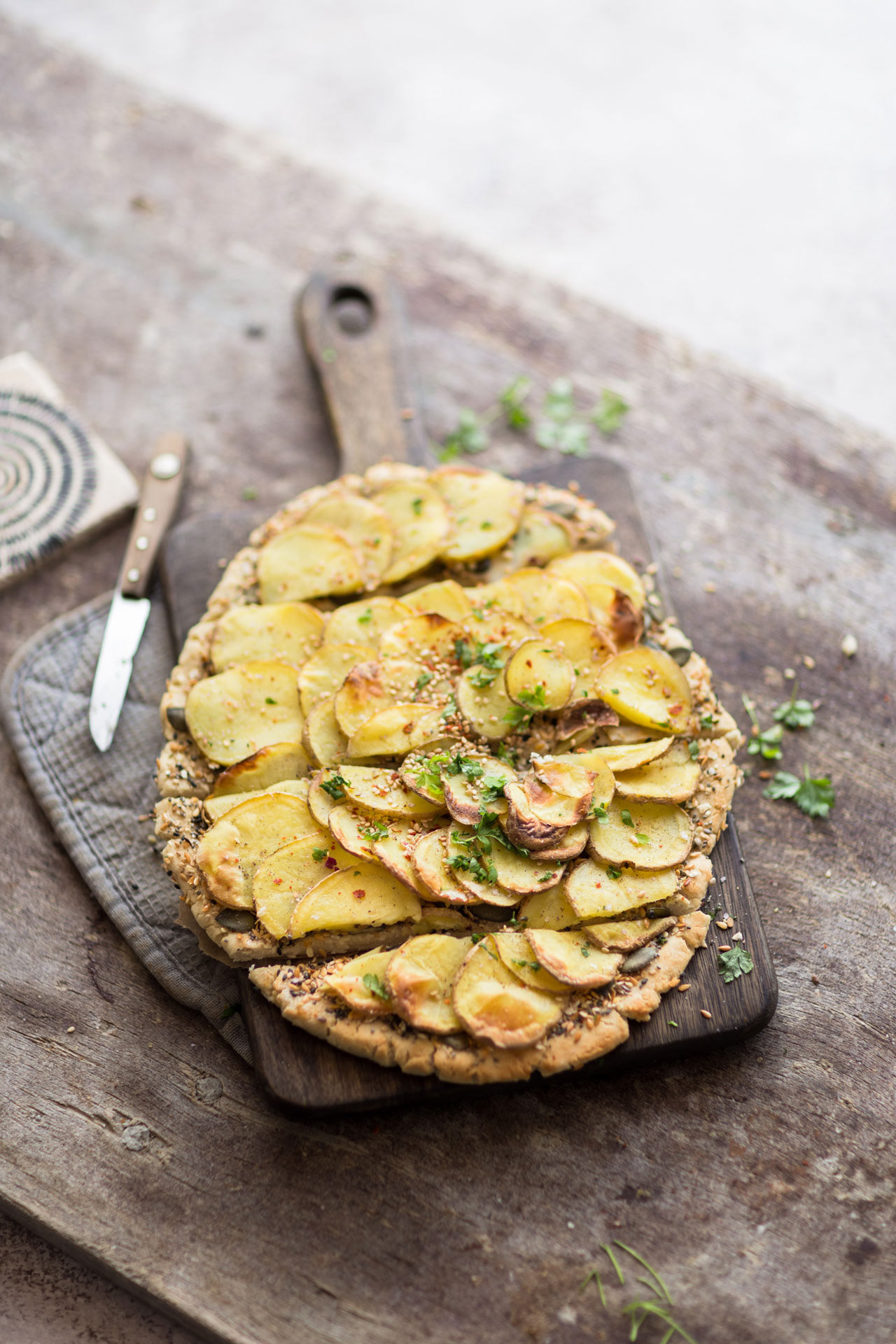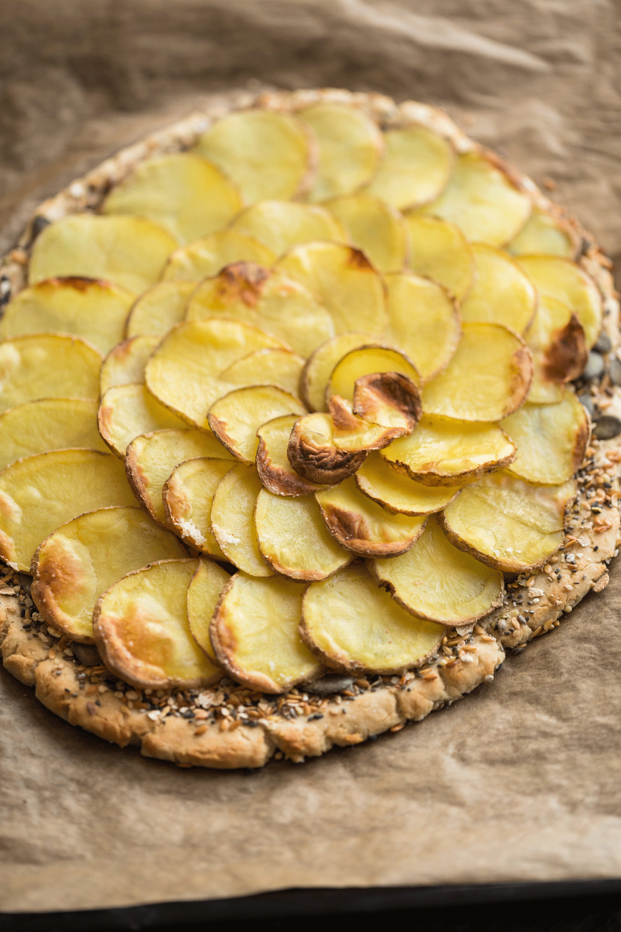 Usually you fill your pizza dough with tomato sauce and other vegetables. Yes, usually. We go one step further and next to finely sliced potato slices. I'm not exaggerating when I say that by far the best pizza topping you've ever eaten.