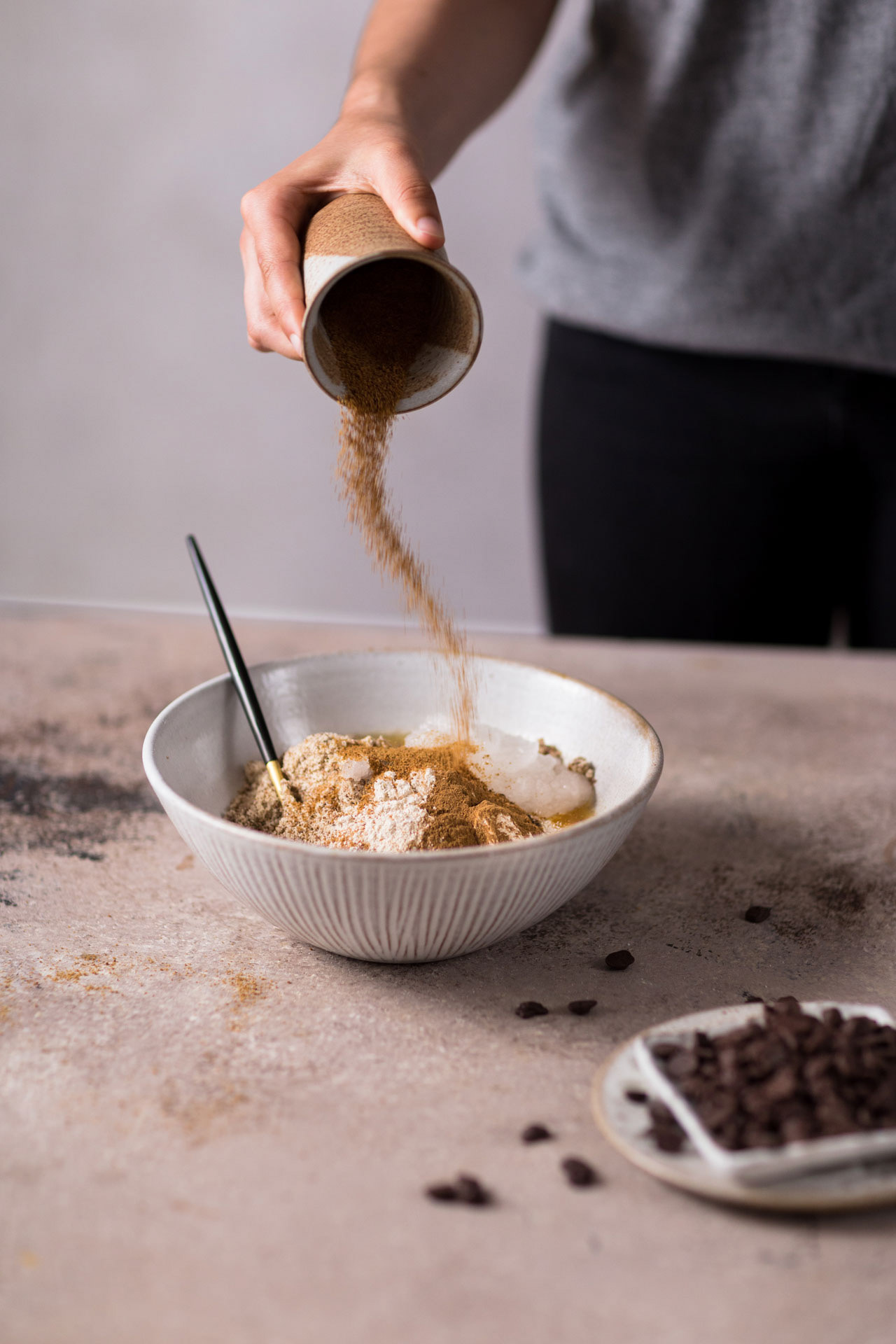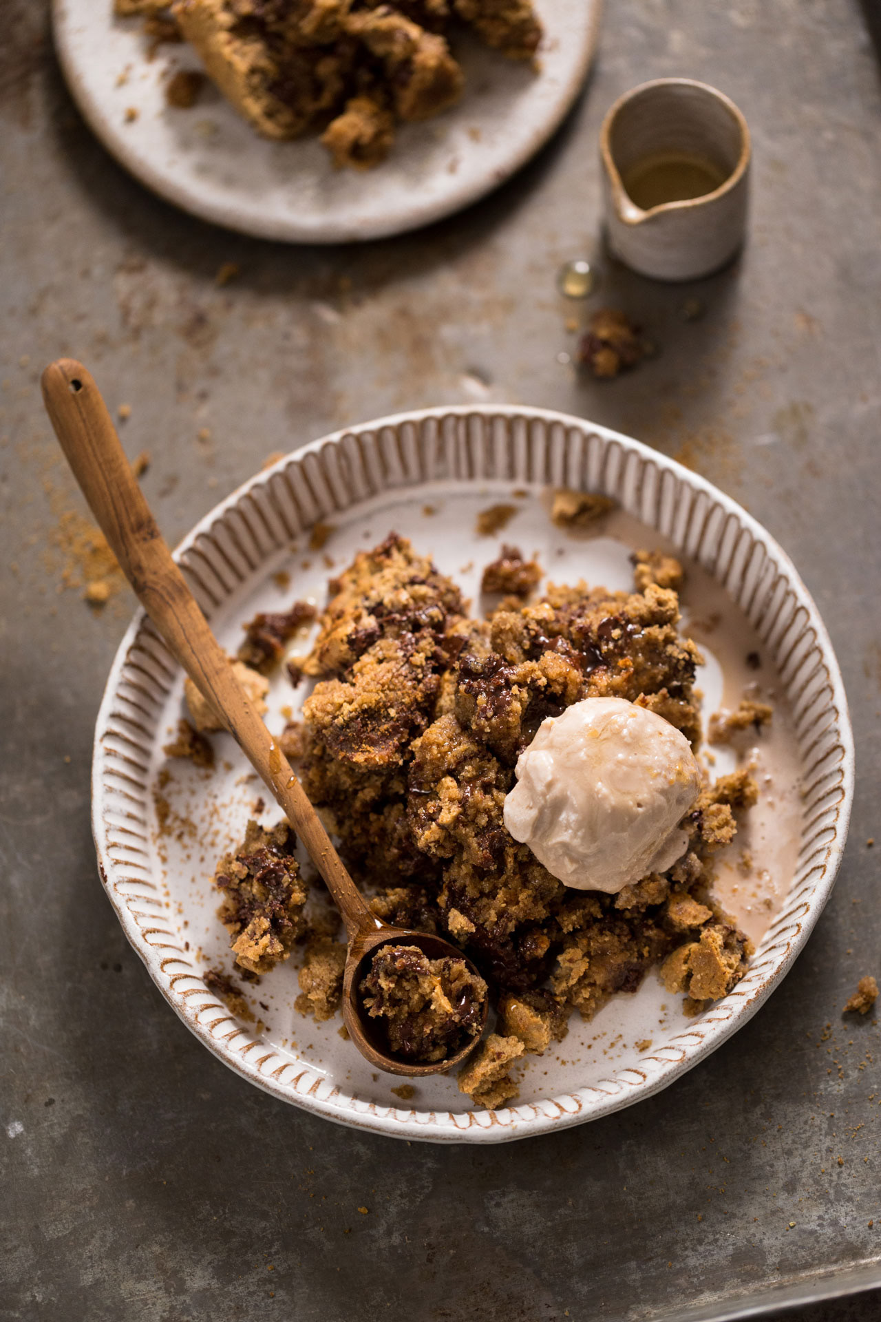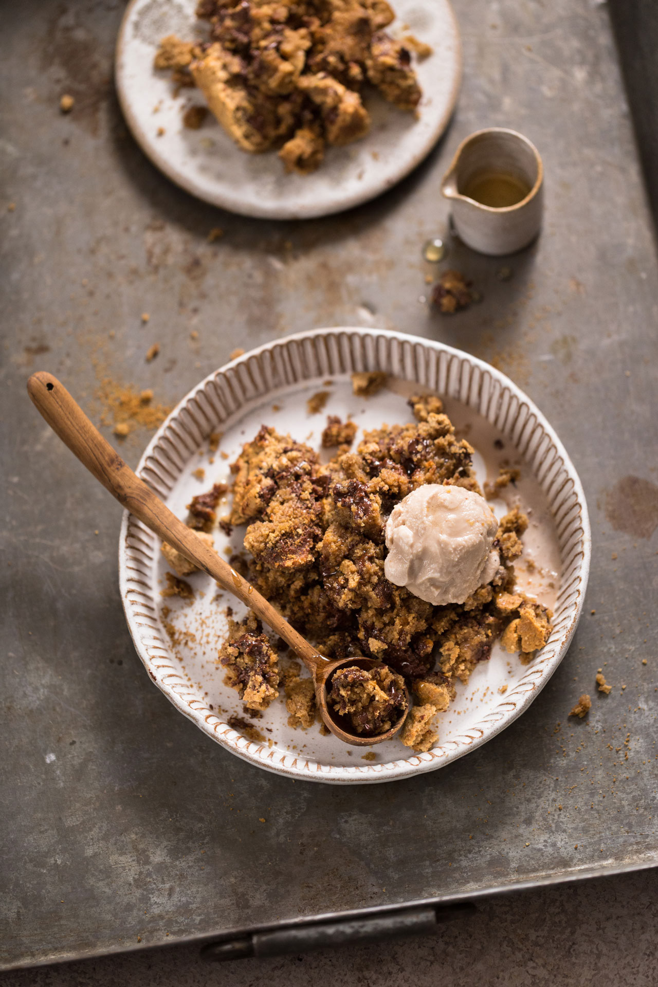 Since the heatwave had pretty much overwhelmed us here in Germany, I did not want to turn on the oven a second time in the last few weeks and the recipe remained only on my paper. Until Robin said one a Sunday(again), it would be time for a little teaser video (you can watch the finished one here). Of course, then I immediately remembered this Chocolate Chip Brownie Crumble recipe. Said, done and felt like 50 degrees in my apartment, we then moved with the finished Crumble and a spoonful of ice cream outside on the balcony ..