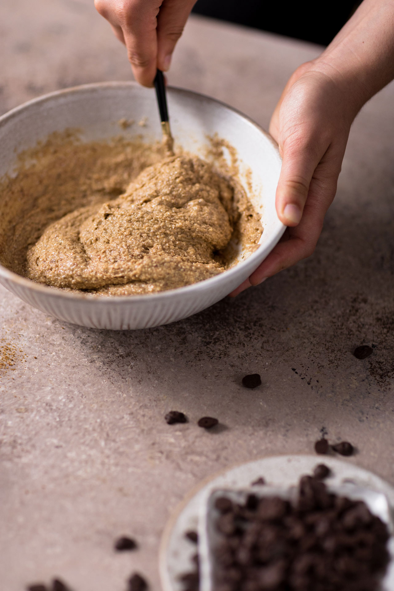 The recipe is once again a good proof that the best recipes happen spontaneously on a rainy Sunday. Yes, this one too! The real plan was to bake chocolate chip cookies. Already while mixing I thought, you can certainly get even more, just like cookies. Said and done and so everything was then placed in a baking pan.