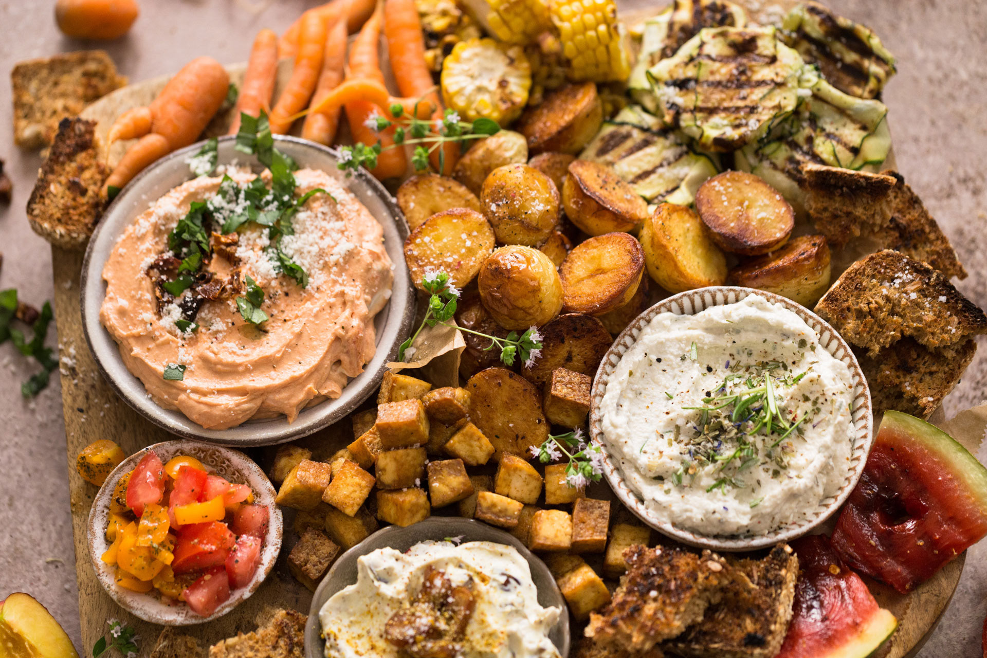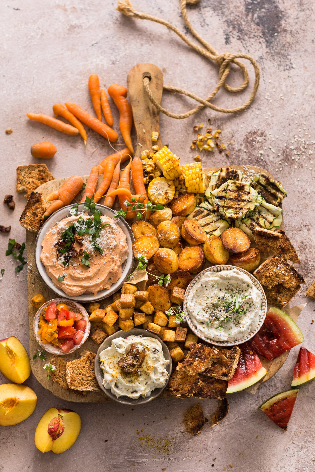 Lasst euch auch nicht von der langen Zutatenliste abschrecken, bei uns gab es zu den wirklich einfachen Dips (die in höchstens 10 Minuten zubereitet waren) eine große Vielfalt an Gemüse, frischen Obst und allerlei Sachen vom Grill..