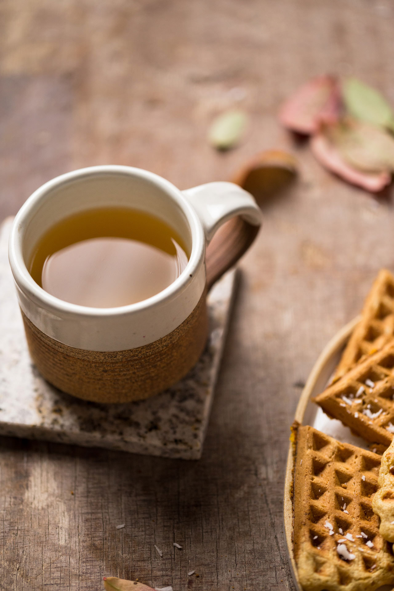 Wenn es nach mir geht, könnte jeder Tag mit einer warmen Tasse Tee und schön flaumigen Waffeln beginnen. Aber natürlich nur mit diesen flaumigen, gf Kürbis Waffeln!