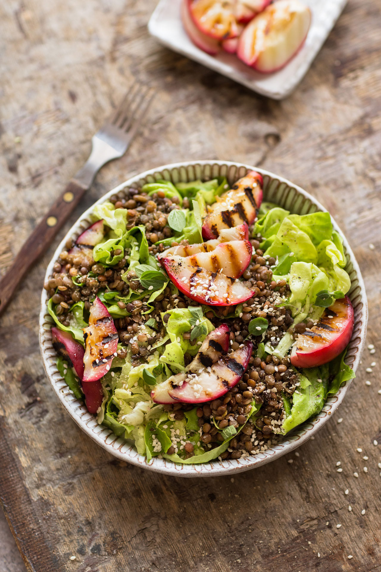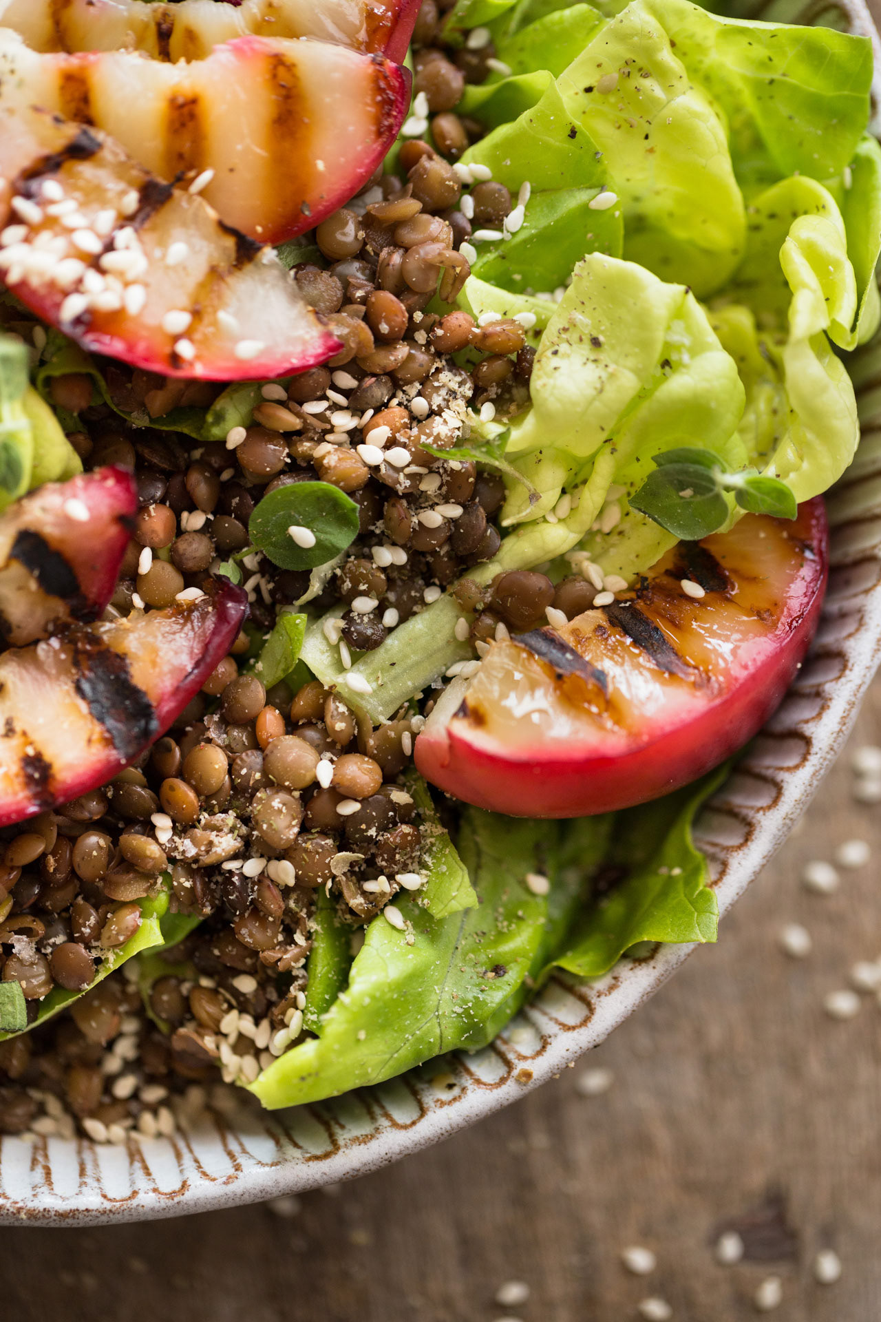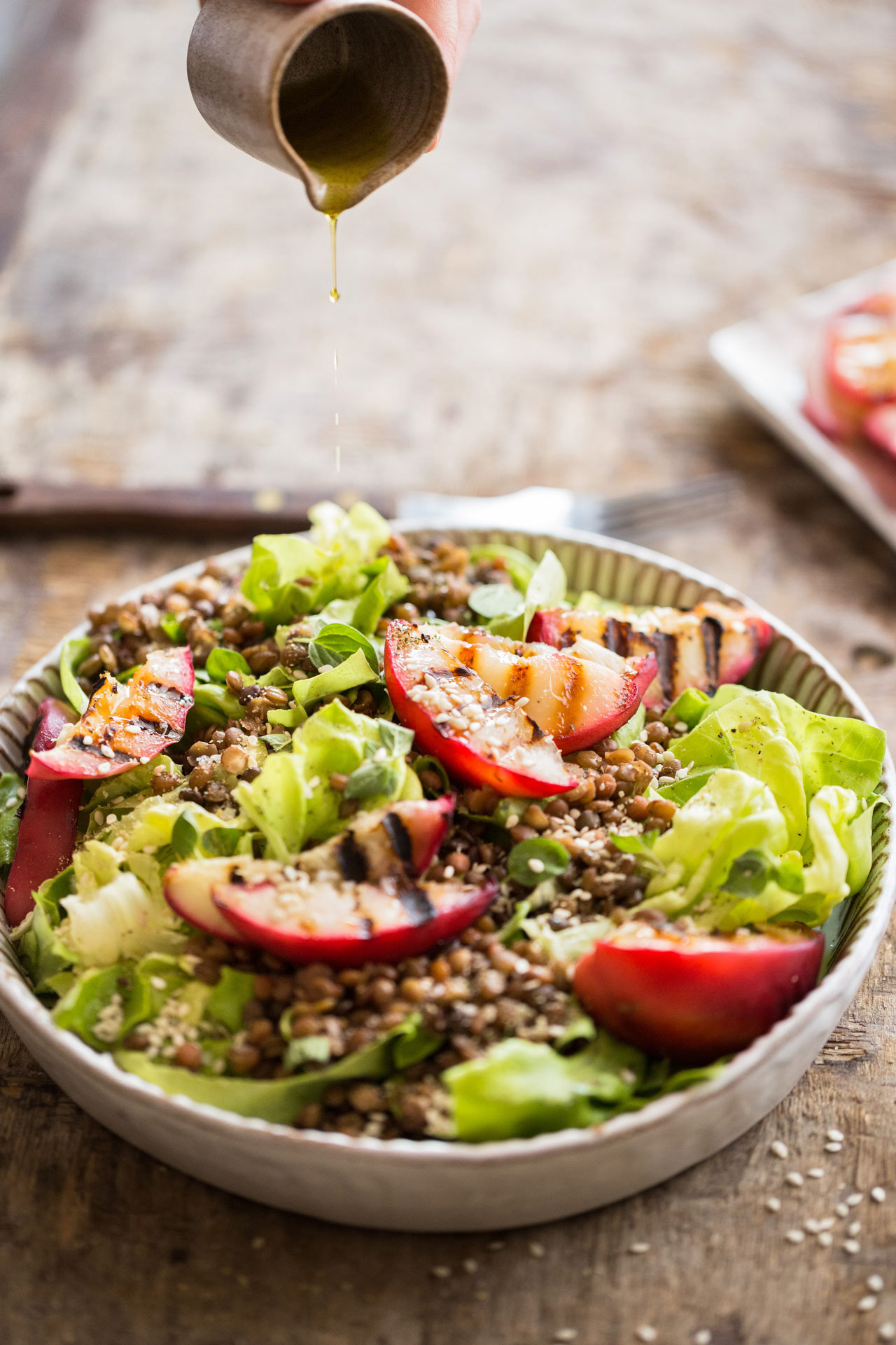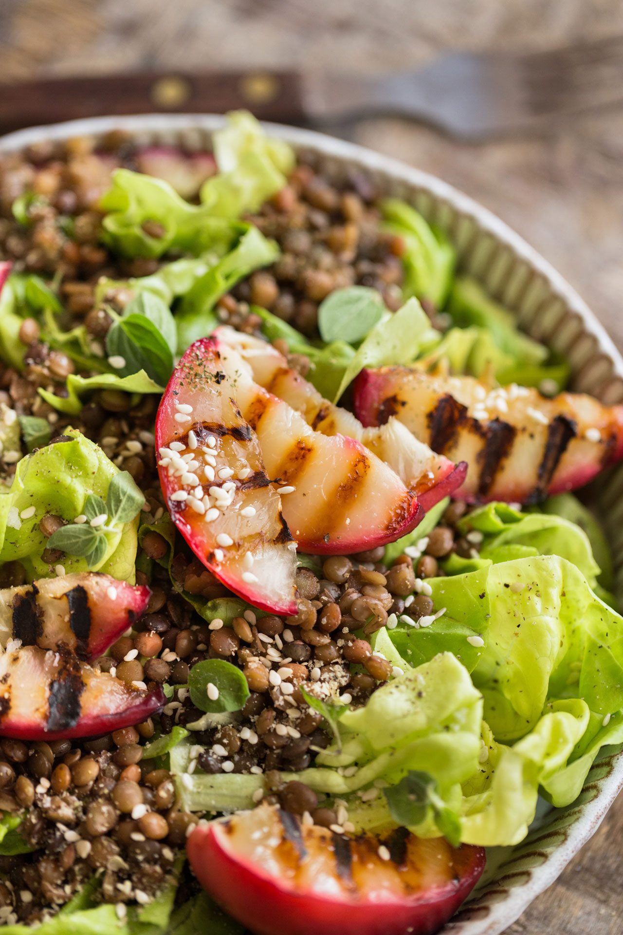 The summer seems to finally say goodbye, but with this dish you bring him back to the plate! Grilled nectarine lentil salad.