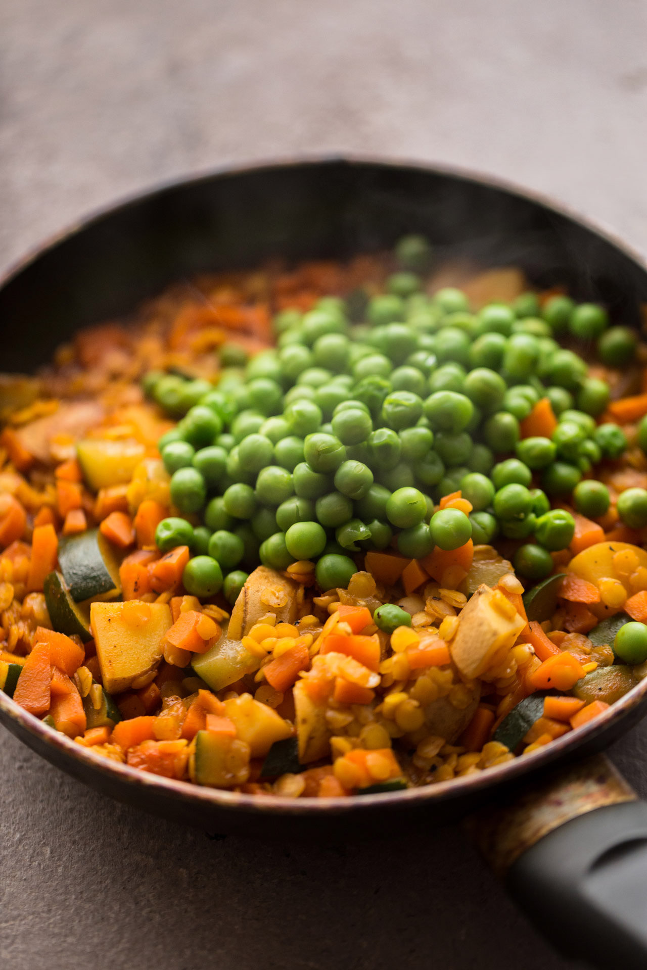 Of course, you can use any vegetables or even more / less potatoes, depending on what your fridge so forth.One thing must not be missing from me. Peas! I love this little green vegetable. As a child, I always ate them directly from the freezer and out of the pack. Well my mother as well, so we have always done it together!