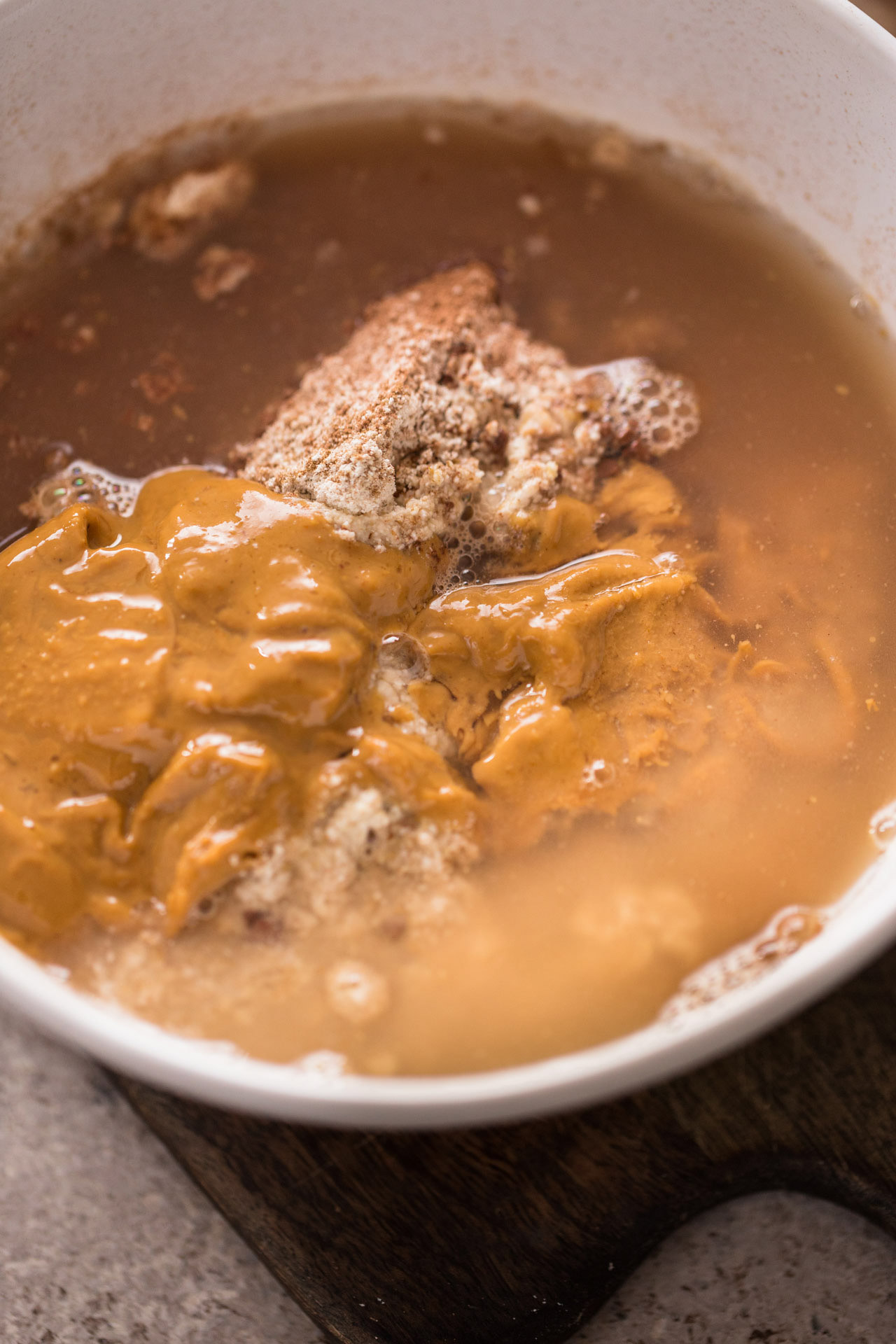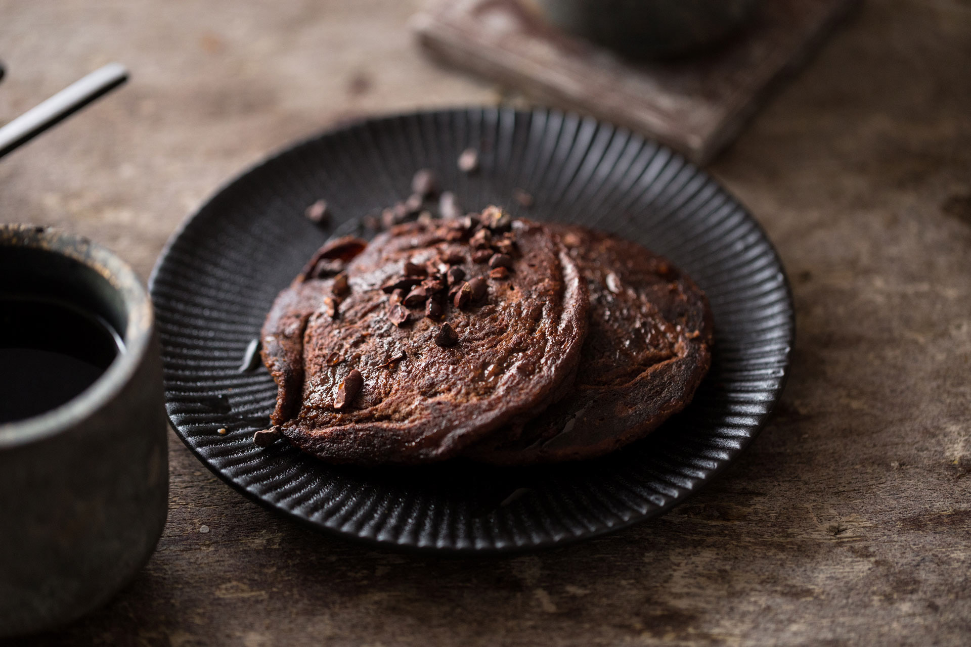 These come out vegan, gluten-free cocoa-vanilla pancakes, also made from a handful of ingredients, such as oatmeal, peanut butter, agave syrup, cinnamon, psyllium husks and of course the brewed tea.