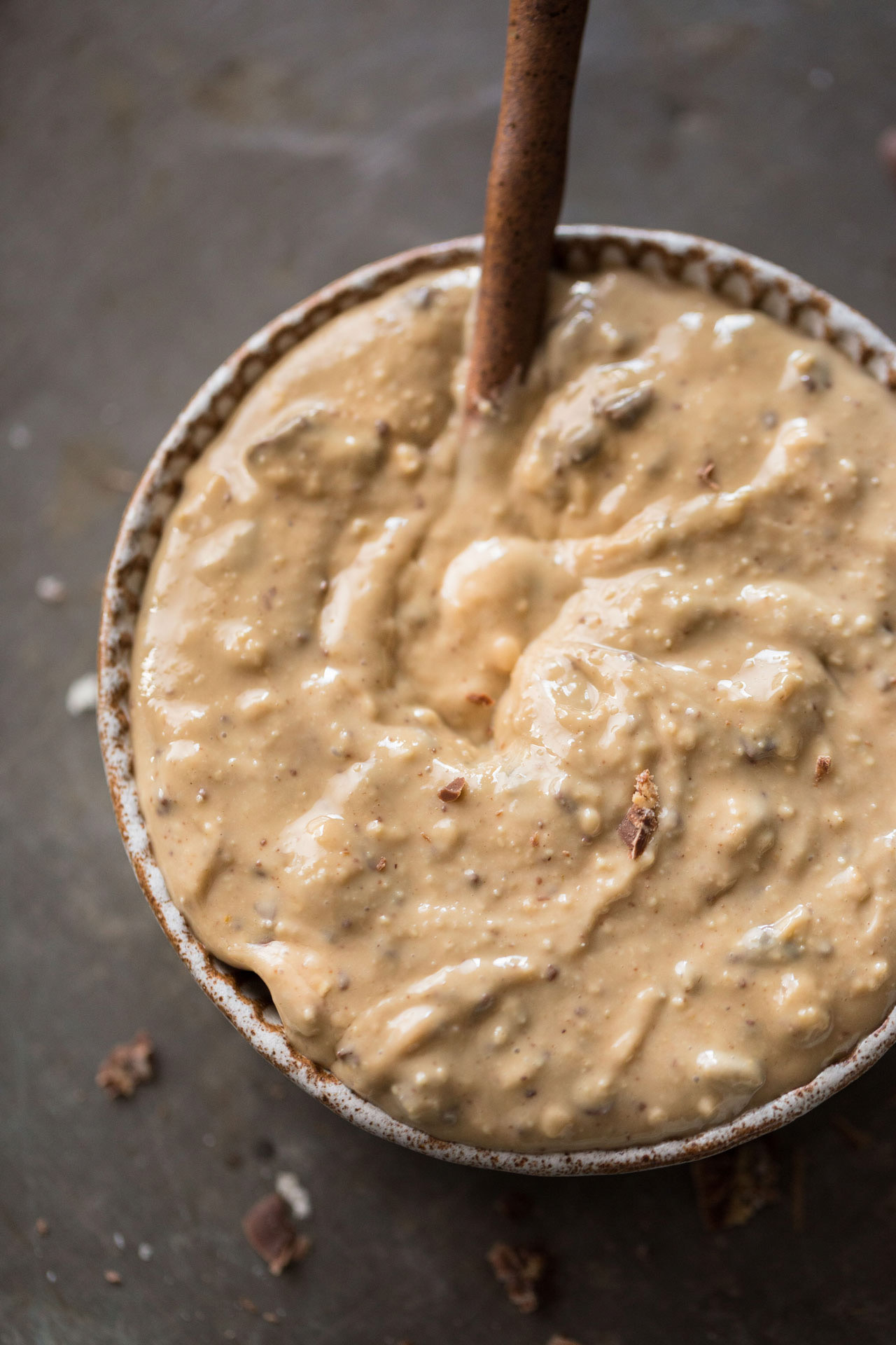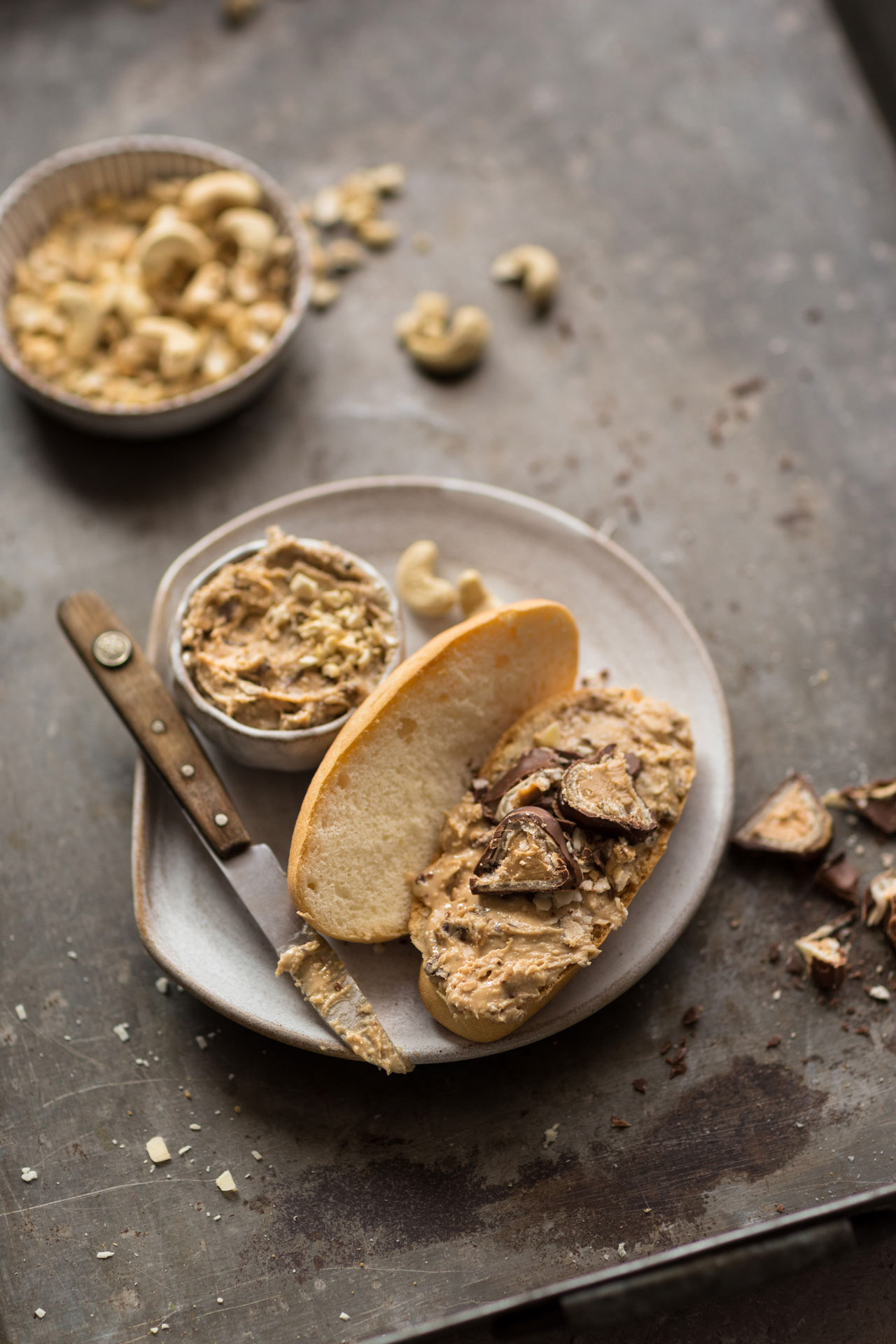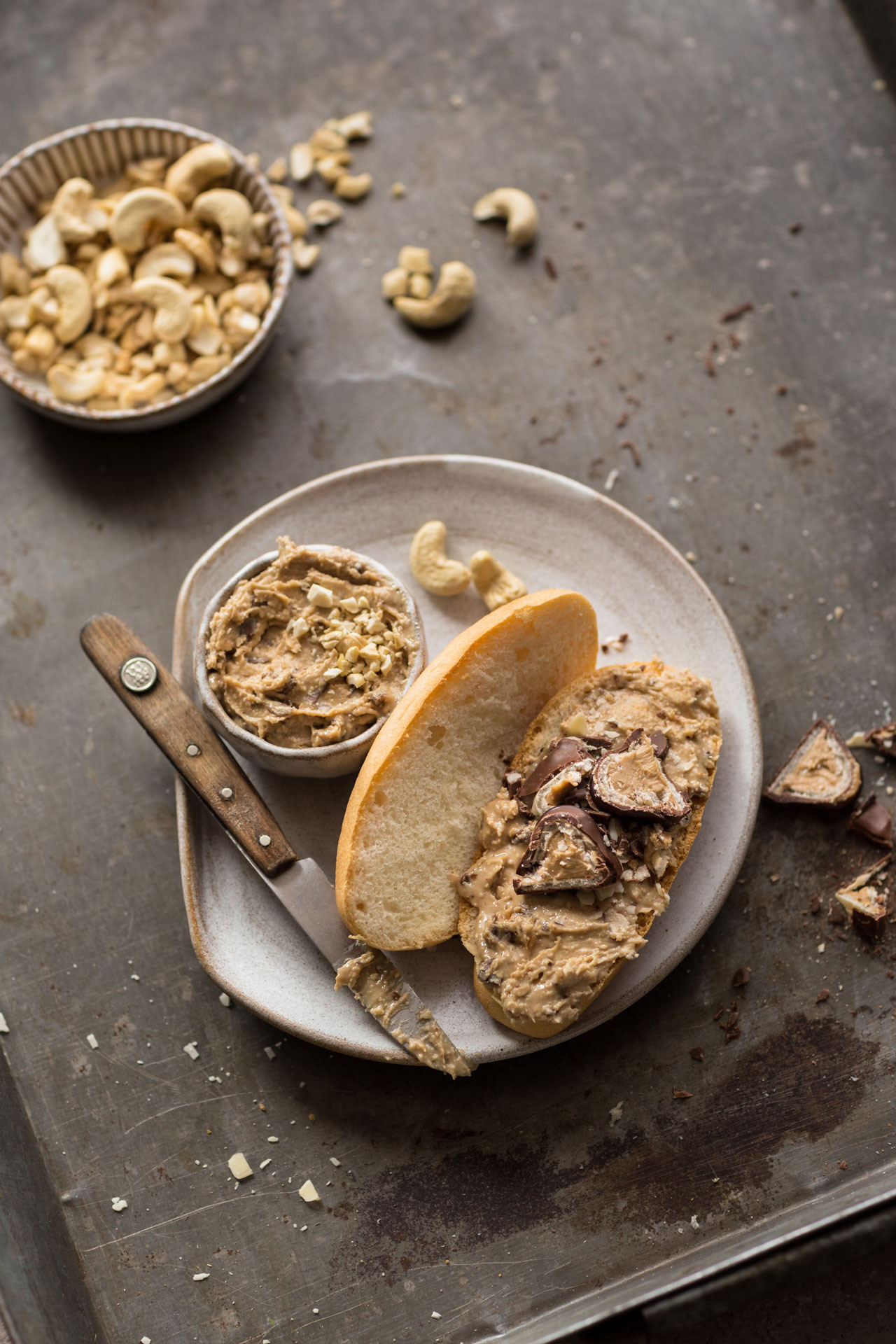 Ihr braucht für dieses Rezept so gut wie keine Zutaten, es ist so simpel. Da wir nächste Woche ja voraussichtlich auf die 40 Grad Marke zugehen, kann ich nur zu gut verstehen, wenn der Backofen bei dem ein oder anderen ausbleiben soll. Um das perfekte Aroma zu erhalten habe ich die Cashewkerne für wenige Minuten goldbraun gebacken. In der Pfanne sollte das aber genauso funktionieren. Wem das auch zu viel Aufwand ist, der kann auch schon fertiges Cashewmus verwenden (dann ungefähr 50 Gramm). Das klappt nämlich genauso gut, habe ich erst letzte Woche für meine Schwester gemacht und ihr für ihr zuhause mitgegeben.