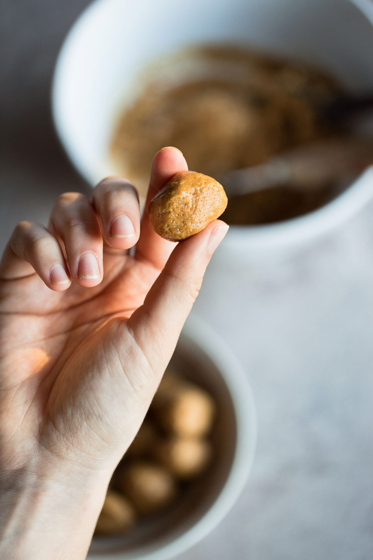 So I tried a few recipes, completely without mixer. This means that these bliss balls are completely without dates or other dried fruits. Normally, dates belong to bliss balls like pb & jelly!