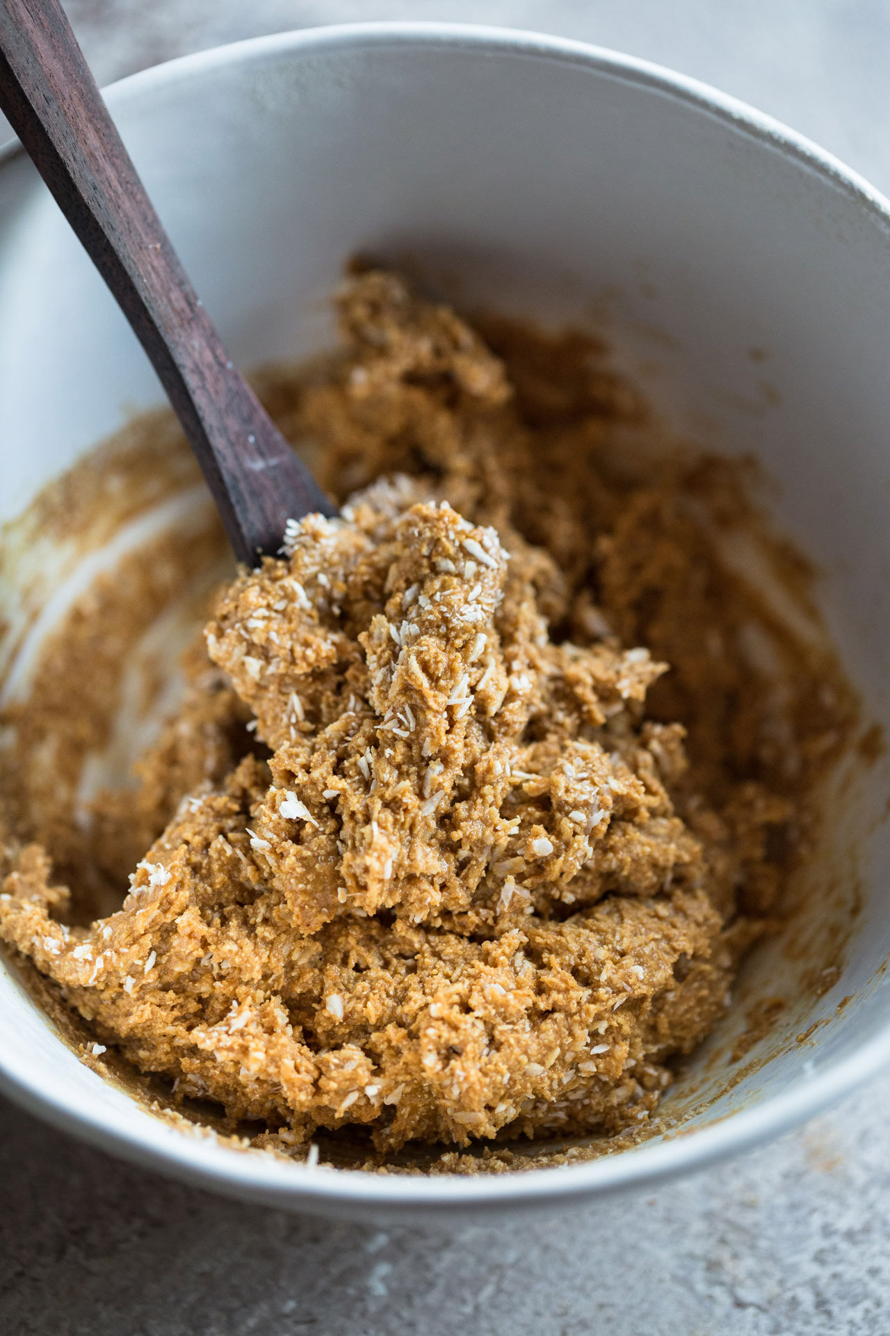 The main ingredient in this case is peanut butter. Nice creamy and best from 100% peanuts. The best part of this is that you put all the ingredients in a bowl and mix until a dough is formed and you can make balls out of it. No 5 minutes and the delicious bliss balls are ready to eat!