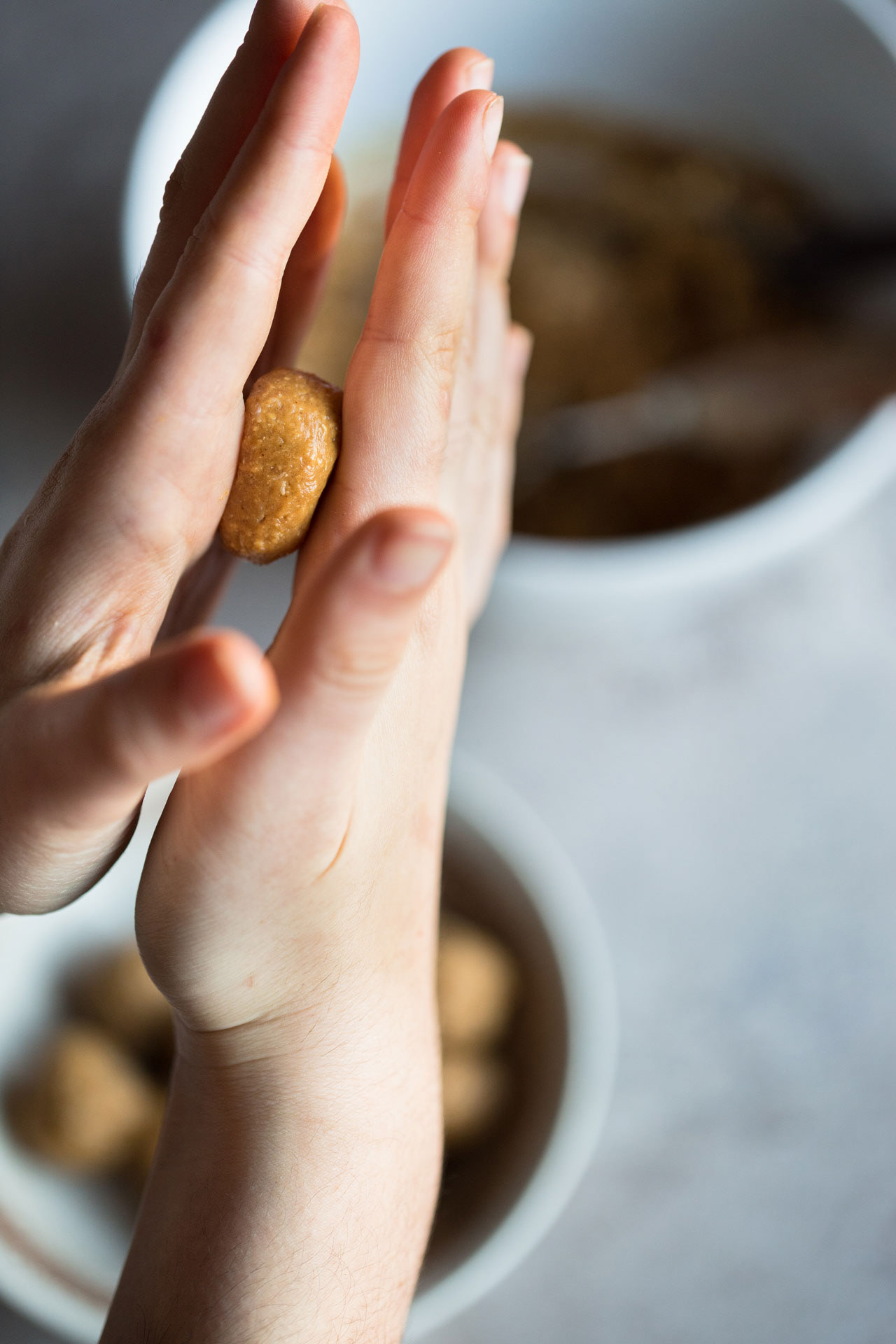 Also ging es vor ein paar Wochen ans ausprobieren, komplett ohne Mixer. Das bedeutet wiederum diese Bliss Balls sind ganz ohne Datteln oder anderen getrockneten Früchten. Normalerweise gehören Datteln zu Bliss Balls wie pb&jelly!