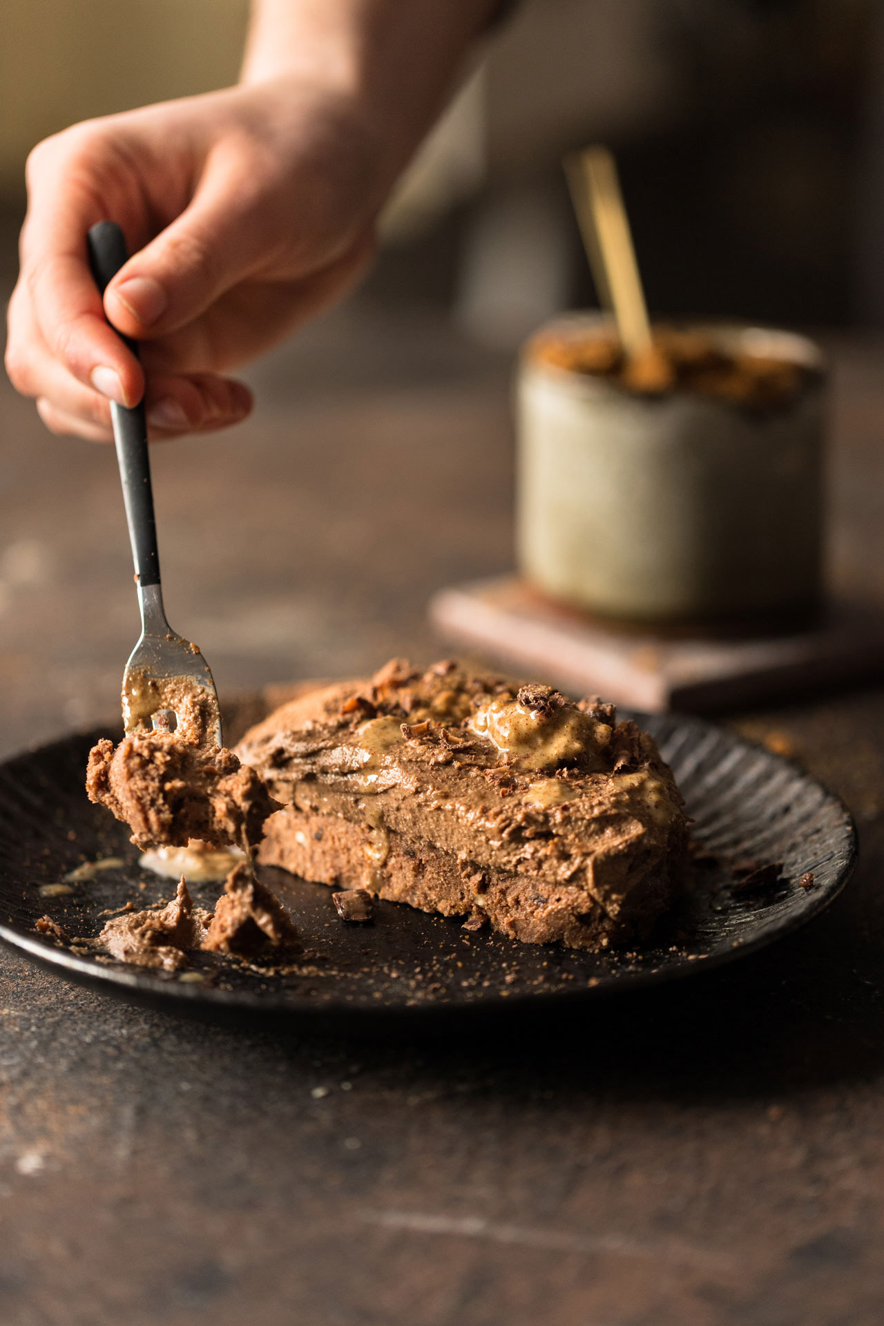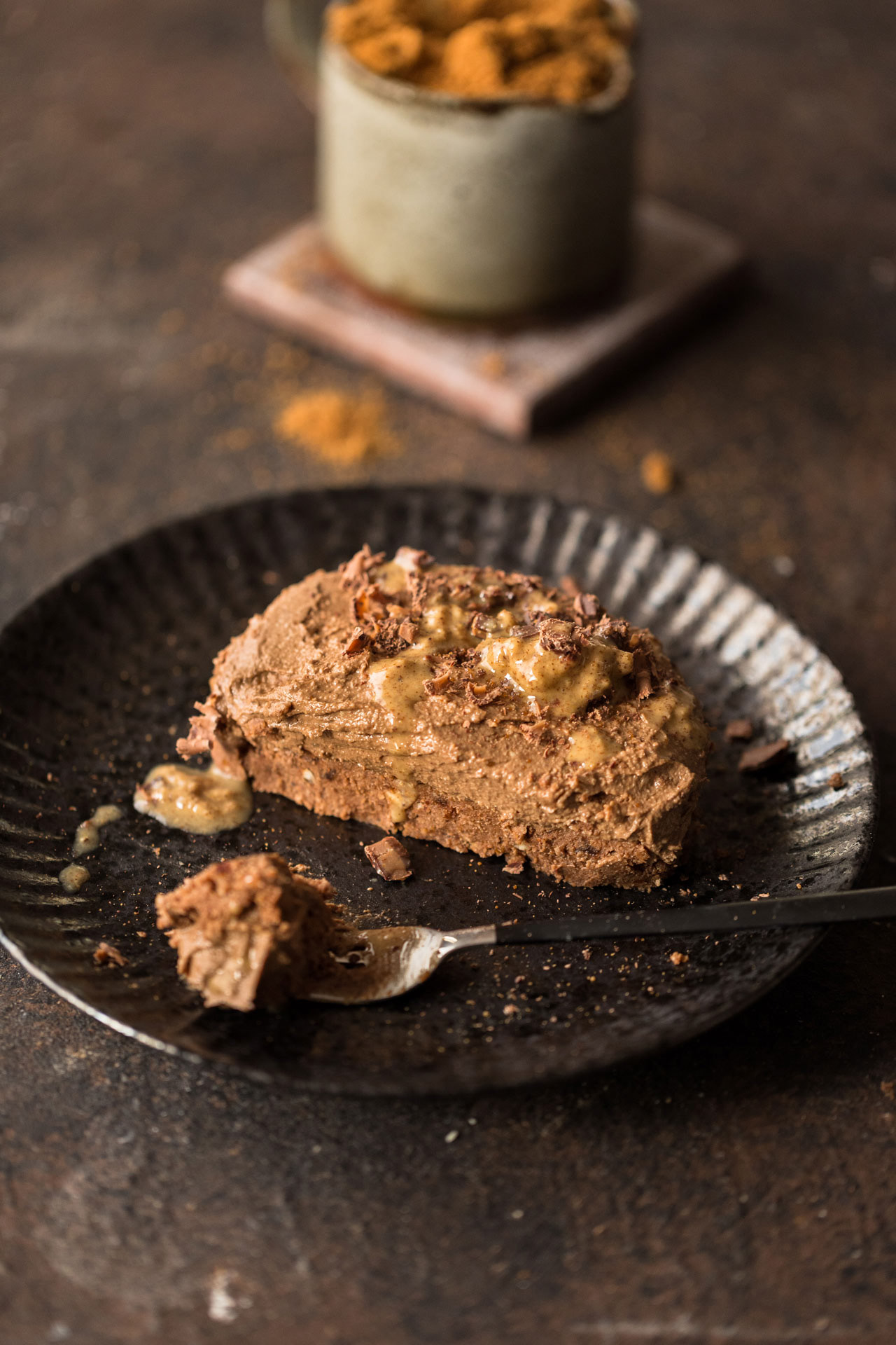 Das cremige Topping obendrauf, übertrifft all euren Erwartungen. Es ist schön fluffig, leicht aber trotzdem sättigend. Also perfekt um es eben gleich mit anderen zu teilen, aus dem Mixer zu löffeln oder wie ich auf den Tortenboden zu verstreichen.