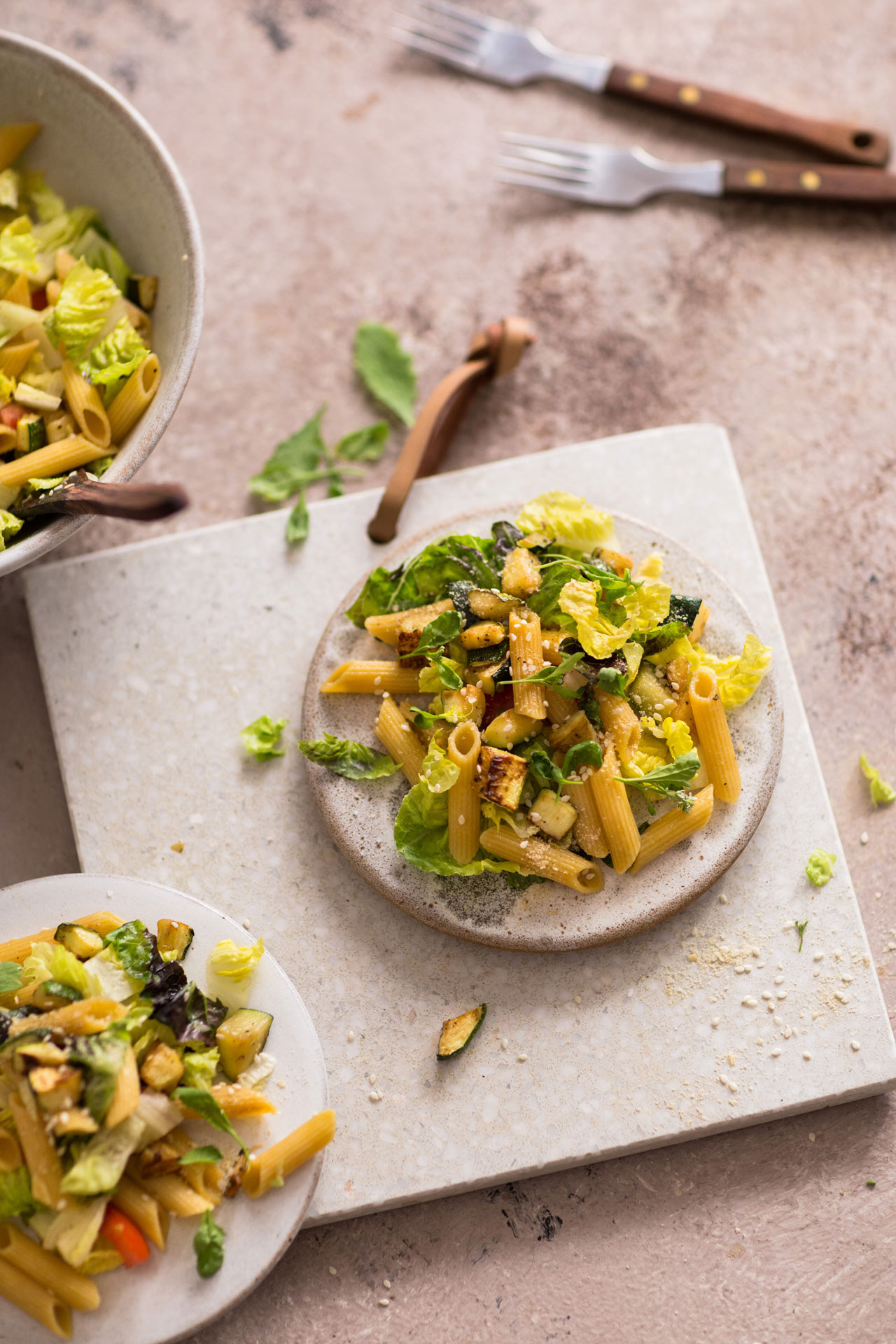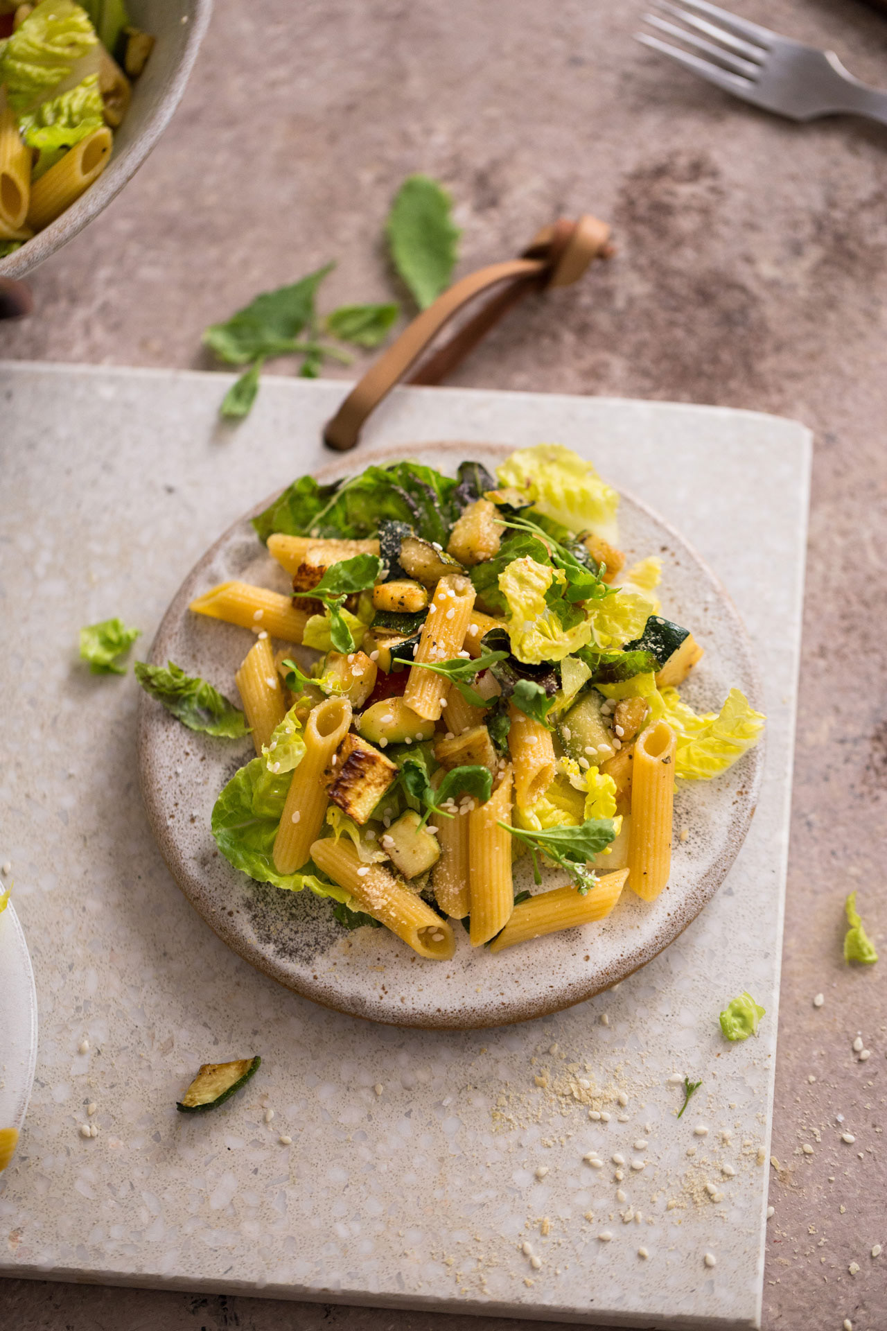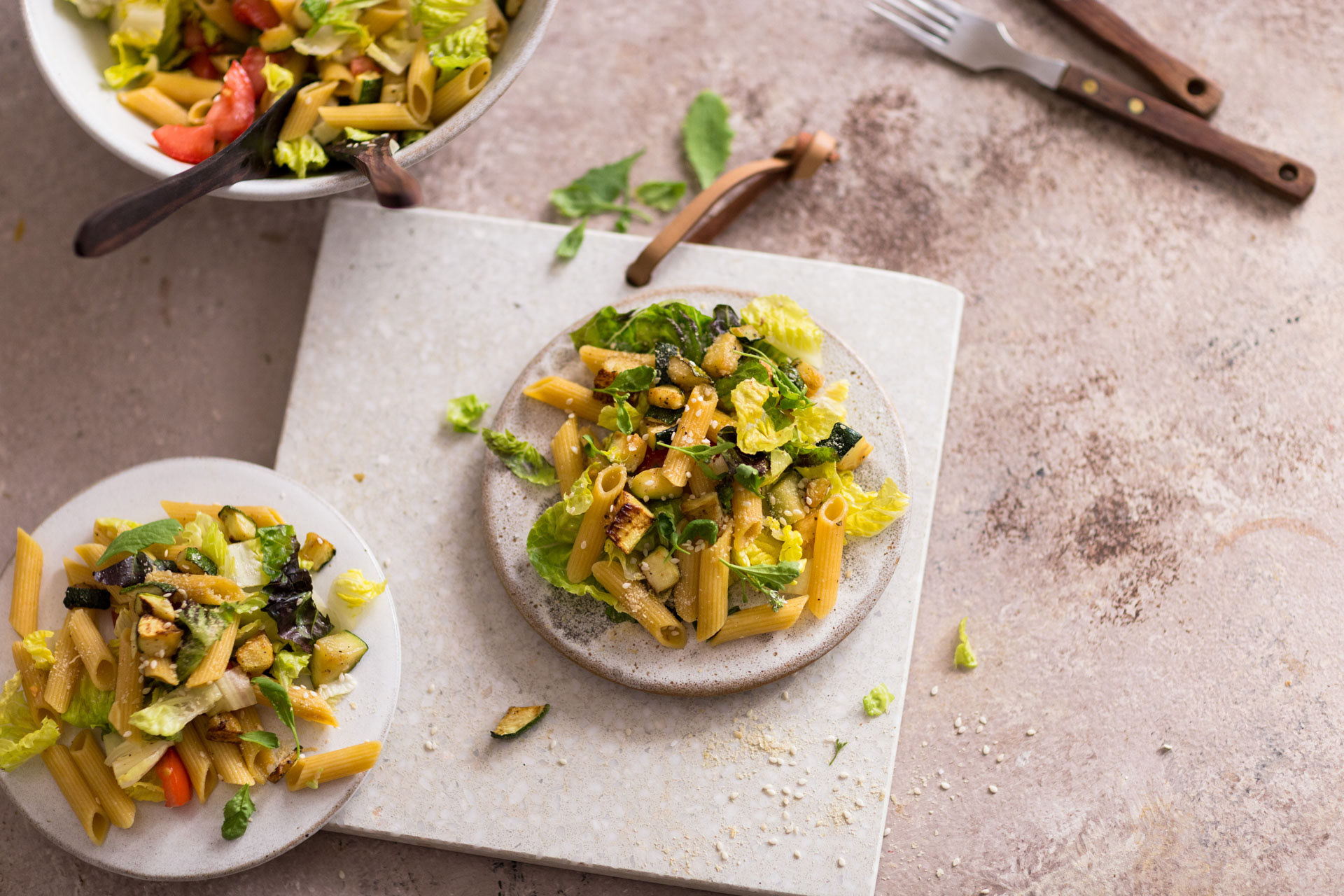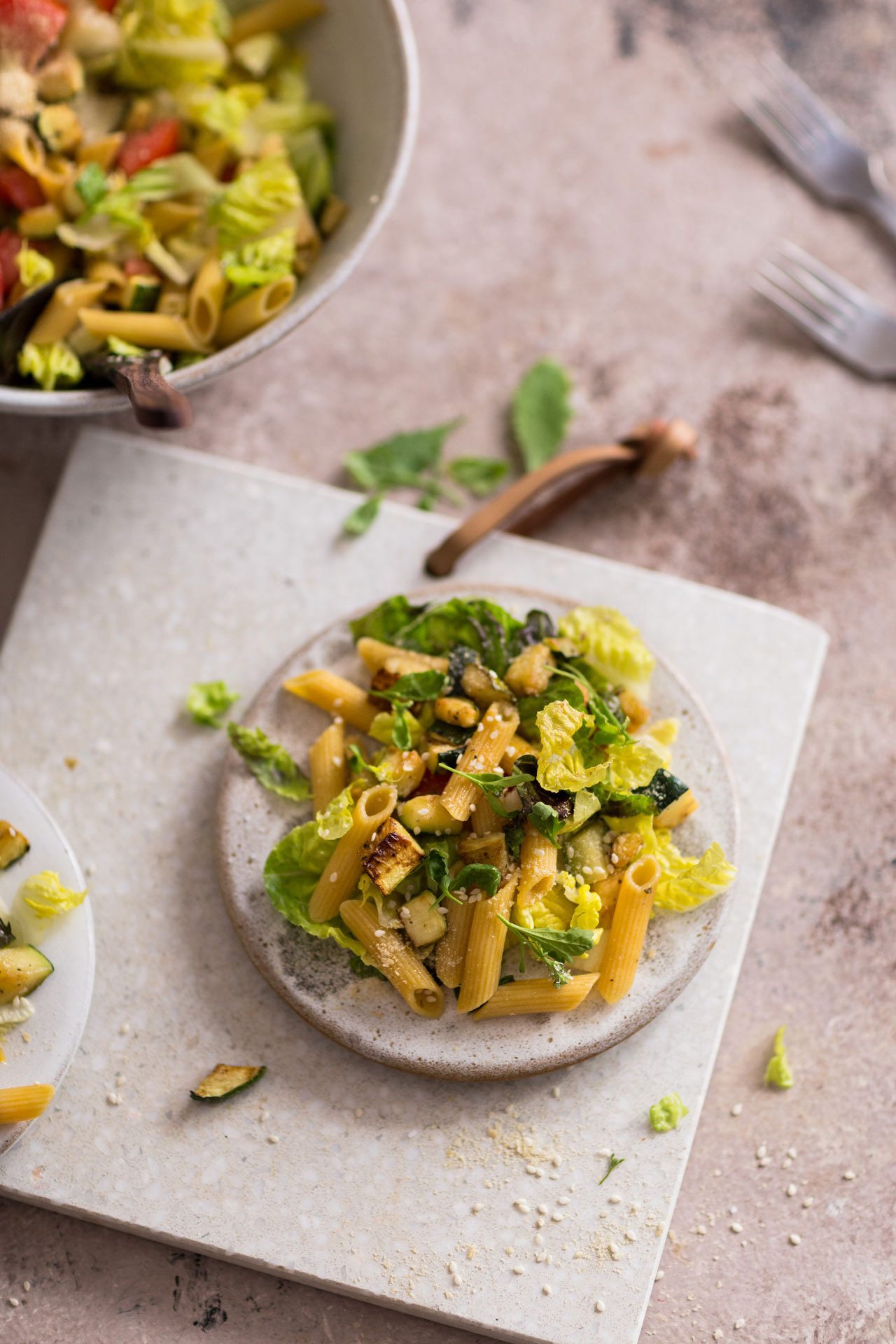 I have tested it several times and yes there are pasta with salad, so pasta salad. Not this actually known recipe with a creamy dressing. Robin was at first very confused and said 'but you have taken it very serious. Its a NoodleSalad'. In my opinion, it's the perfect mix of hot lunches and crunchy lettuce, fresh vegetables and herbs.There are no limits to the combination!