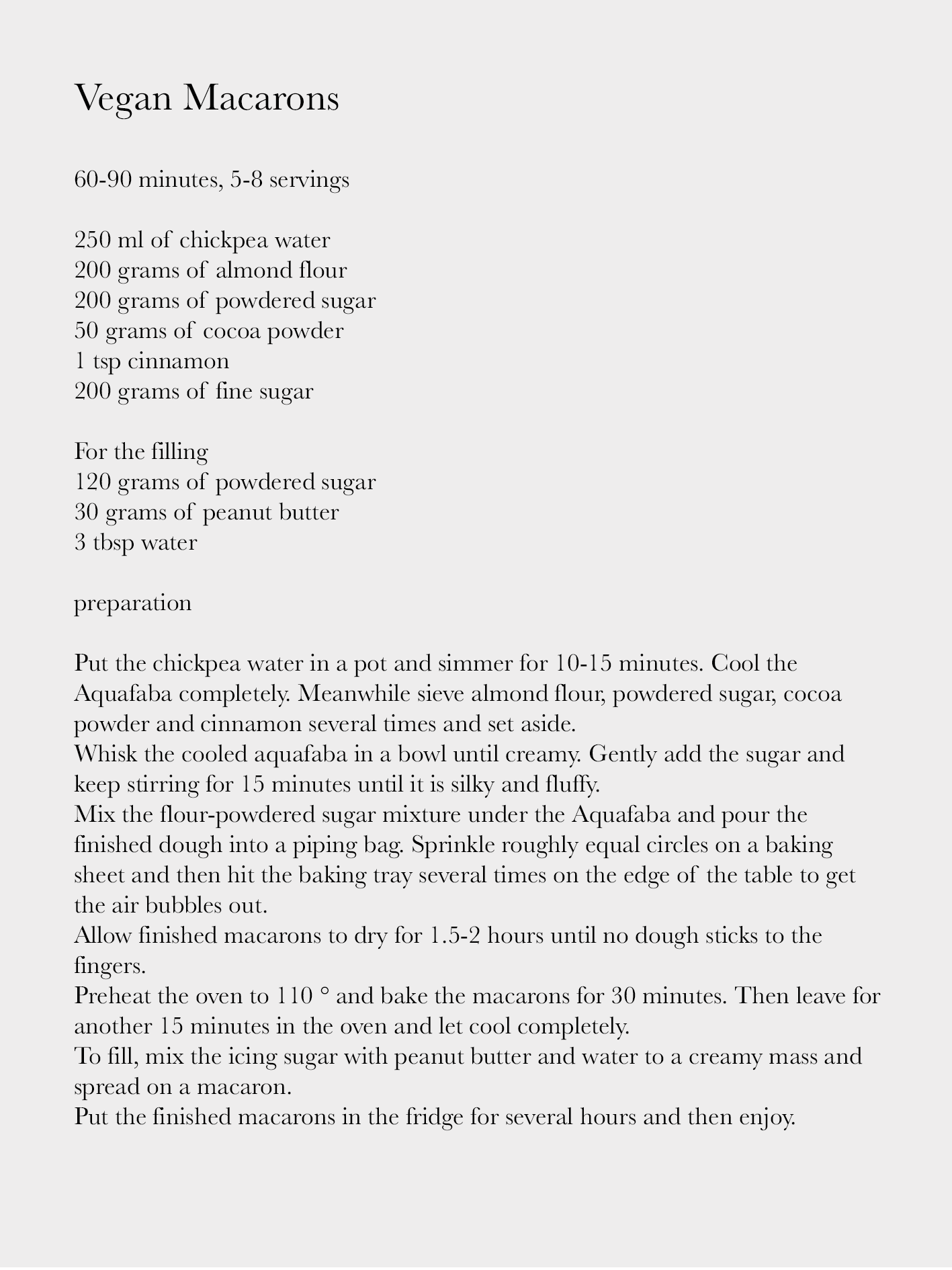 Yes, these macarons are made from chickpea water, much more known as Aquafaba. The liquid is boiled, which really does not smell pleasant. But it is well worth it, as you can whisk it up super fluffy.After several attempts, I got the idea in the evening to try it all out again. So, I went in the kitchen for about 9 p.m with the hand mixer for 20 minutes. My neighbors have to love me haha!